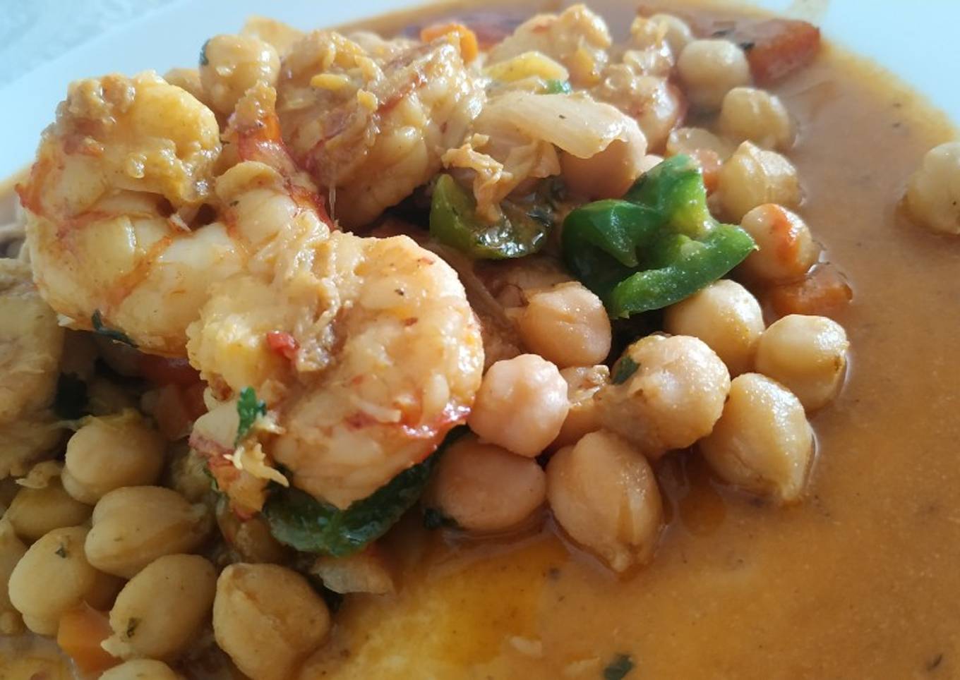 Garbanzos con gambas al curry