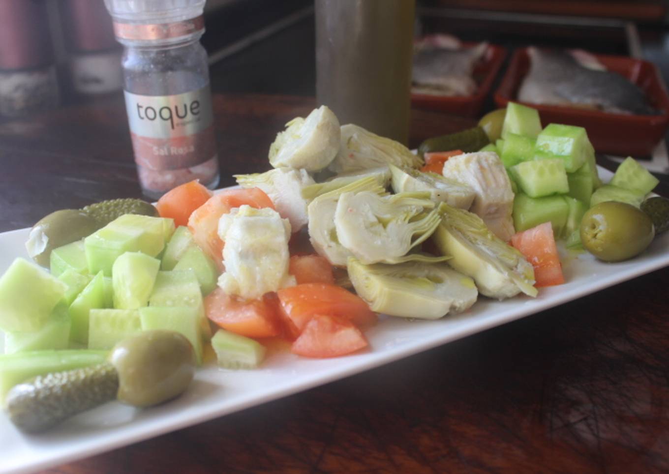 - En cada esquina colocamos las aceitunas con sus correspondientes pepinillos.