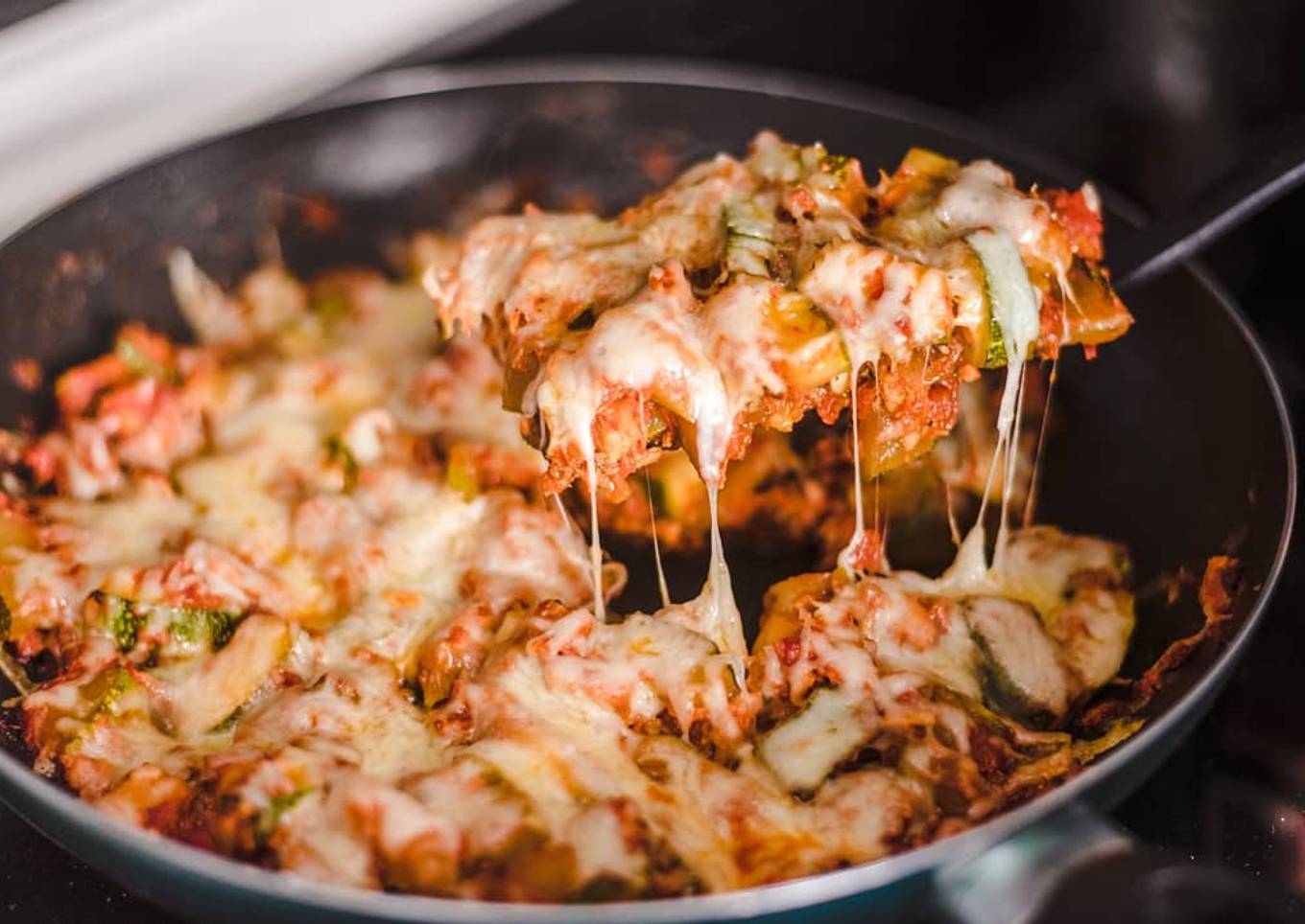 - Todo lo anterior se hace a fuego medio-alto. Cuando el calabacín esté cocido, baja el fuego al mínimo y espolvorea queso rallado por encima. Déjalo hasta que se funda y ya está listo! 😍😍