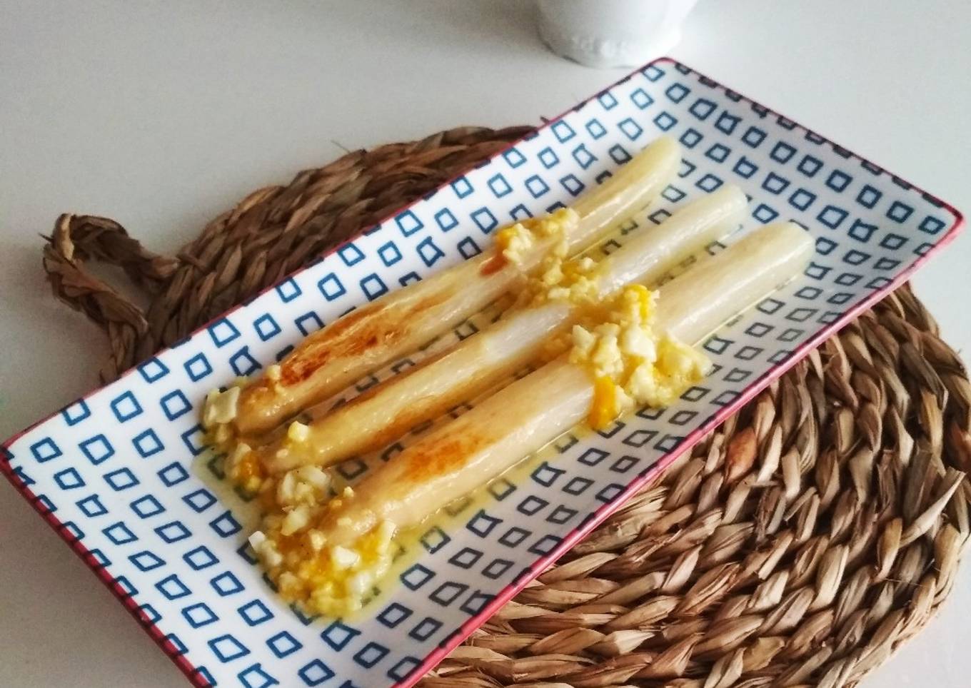 - Picar el huevo, mezclar con la vinagreta y poner emcima de los espárragos.