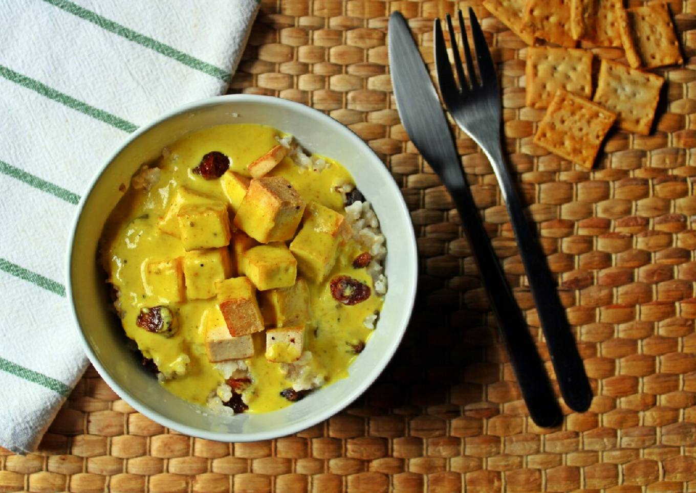 Tofu al curry con arroz integral
