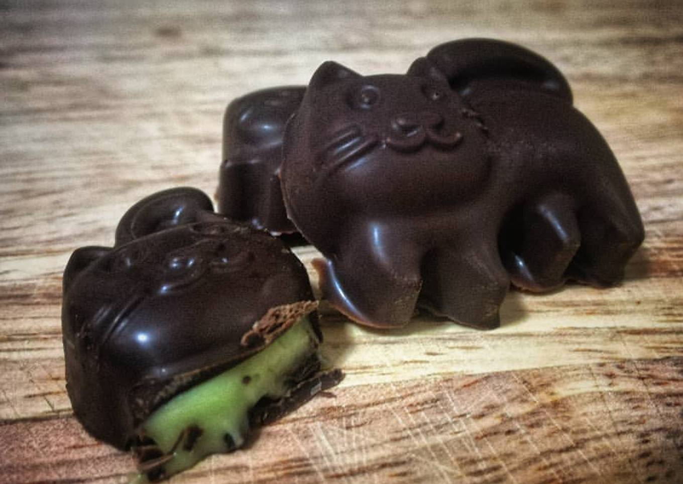 Bombones de chocolate negro y mousse de aguacate