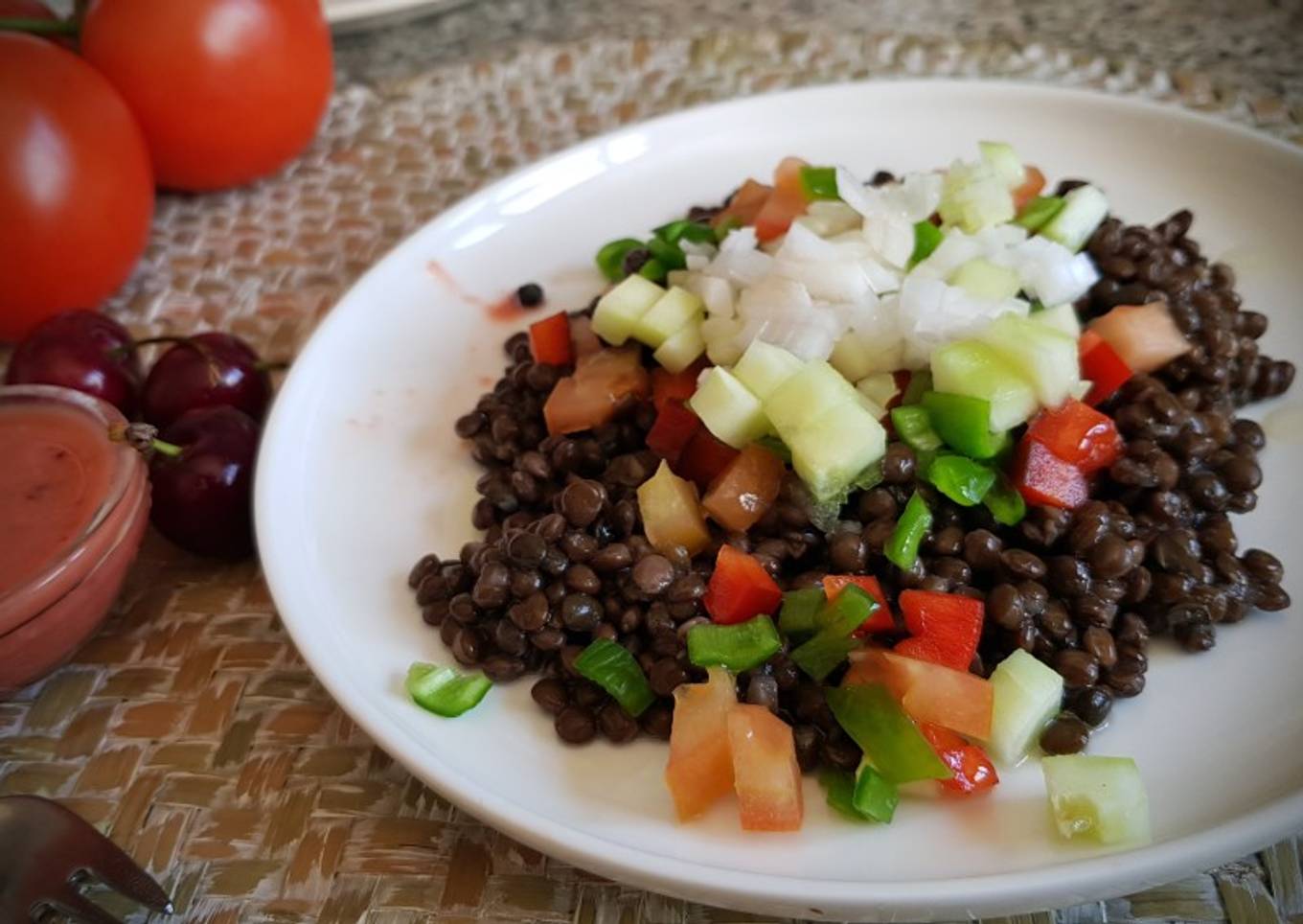 Ensalada de Lentejas aliñada con Gazpacho de Cerezas
