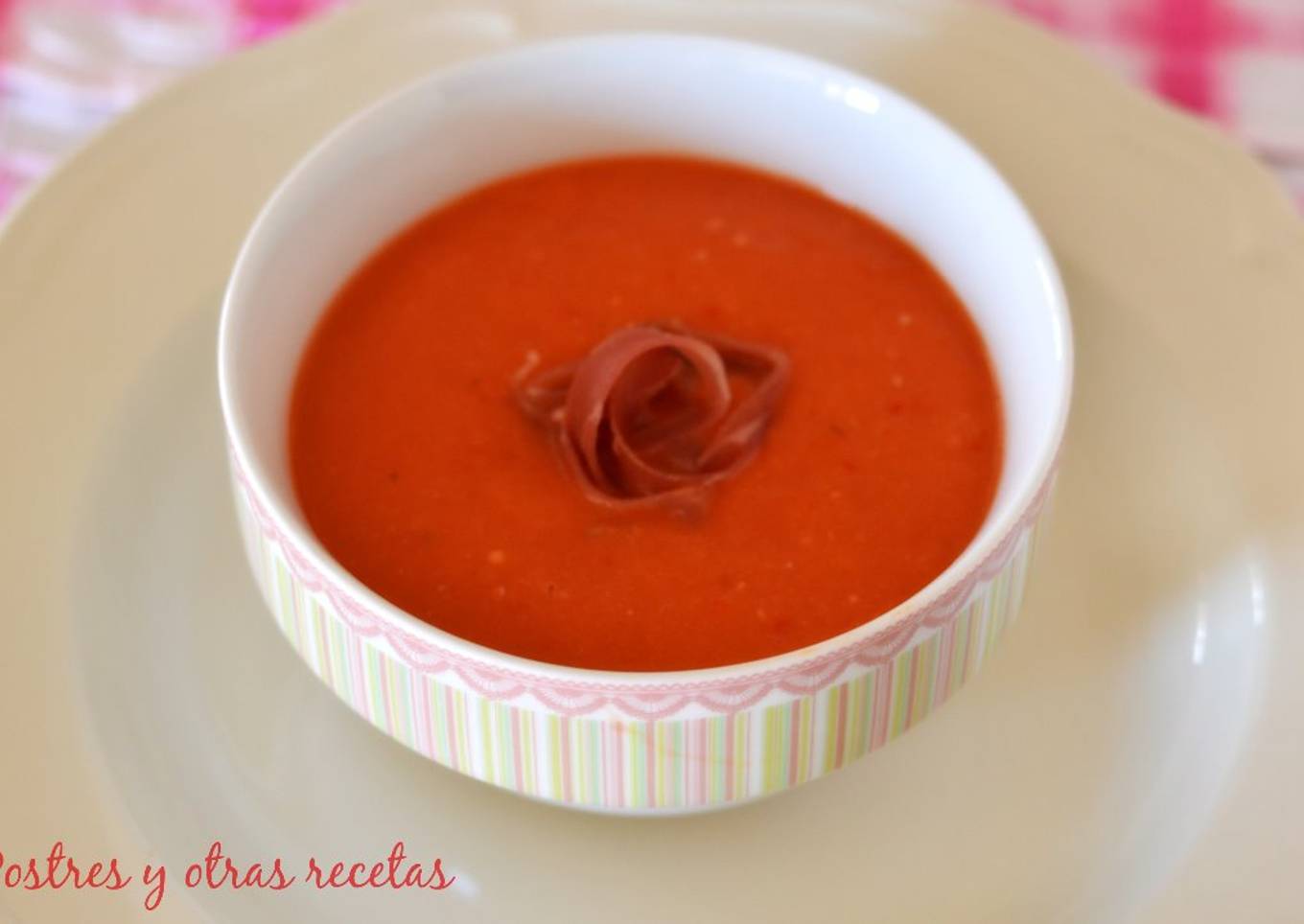 En el verano nos encanta tomar esta sopa fría, solemos hacerla cuando vamos al pueblo y nuestra familia nos regala unos deliciosos tomates de su huerta.