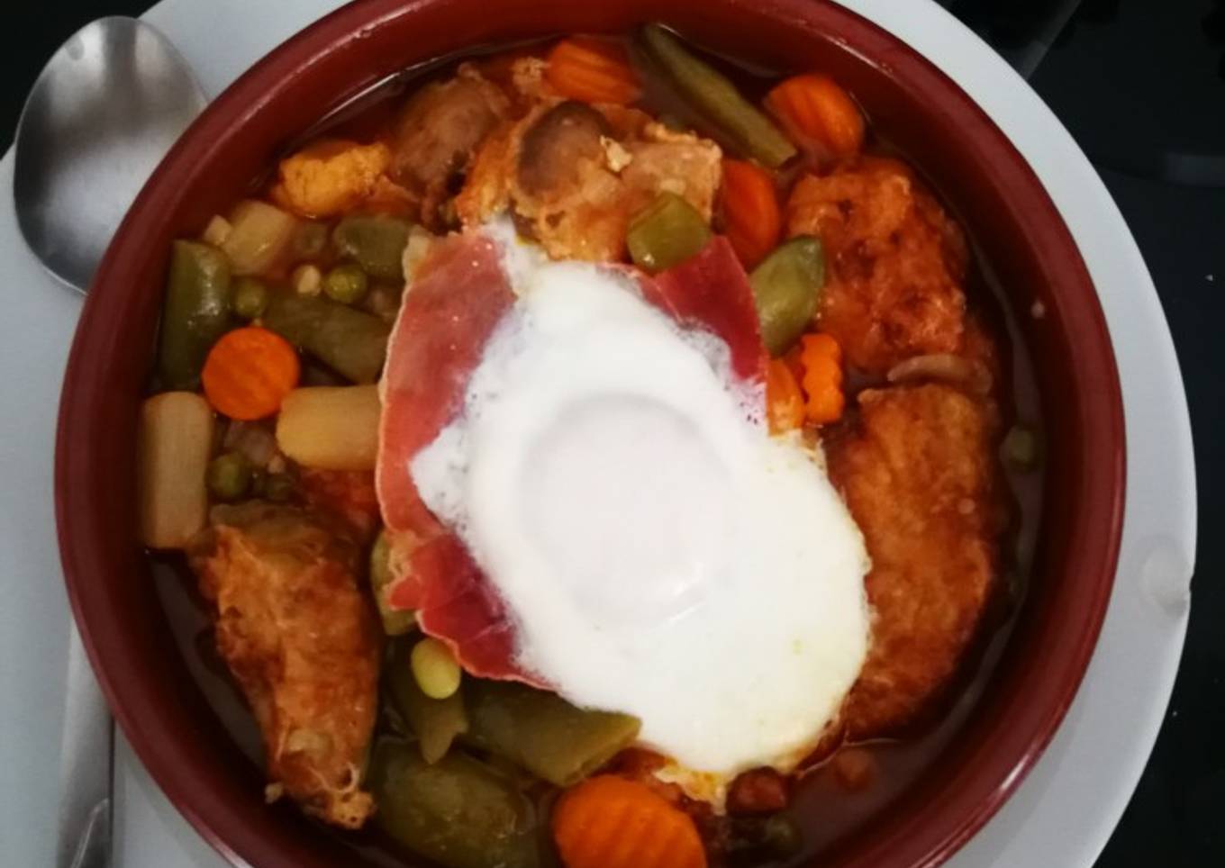 - Yo cuando lo sirvo le añado una loncha de jamón serrano le casco un huevo un poquito de sal al huevo. Tapó la cazuela con un plato y al microondas 5 min(el tiempo dependerá de lo mucho o poco que quieras echo tu huevo) este paso es opcional pero para mí no puede faltar jeje. Disfrutarlo