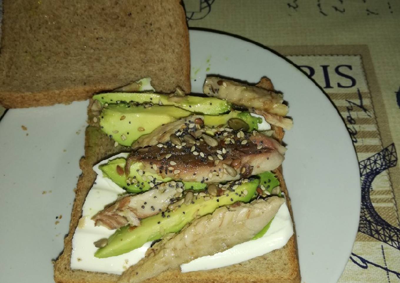 - Cortamos el aguacate, el queso y ponemos sobre las rebanadas y seguidamente ponemos la caballa y la mezcla de semillas!! Para una cena sana y rápida esta muy bien