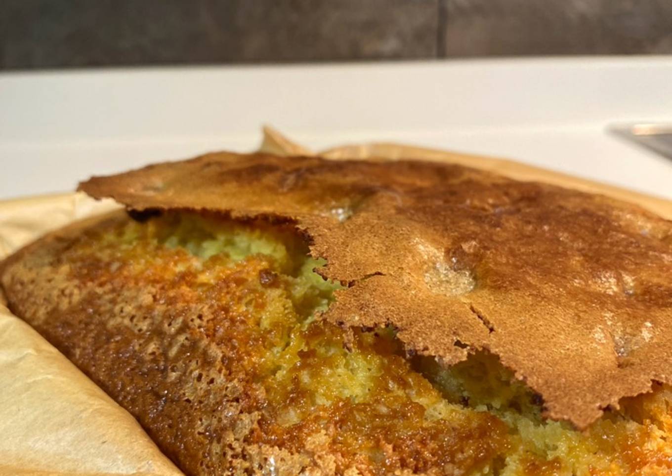 Bizcocho esponjoso de naranja y yogur con chips de chocolate